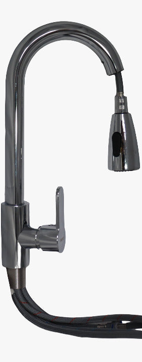 Grifería para cocina ideal para lavaplatos tradicionales de gran tamaño, manguera extraíble ideal para lavado de olla o utensilios de difícil acceso , función de chorro y regadera, color gris y negro.